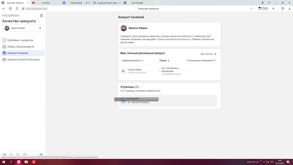 Где то в конце сентября создал акк прост пробовал настроить рекламу, словил блок, т.к. на привязанной карте не было денег( а они 125р в кач-ве проверки снимают). Ну  в тех поддержку написал все норм, восстановил.