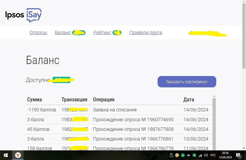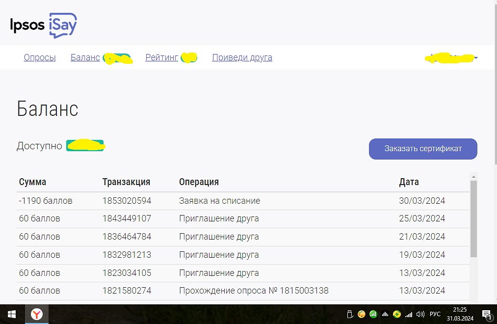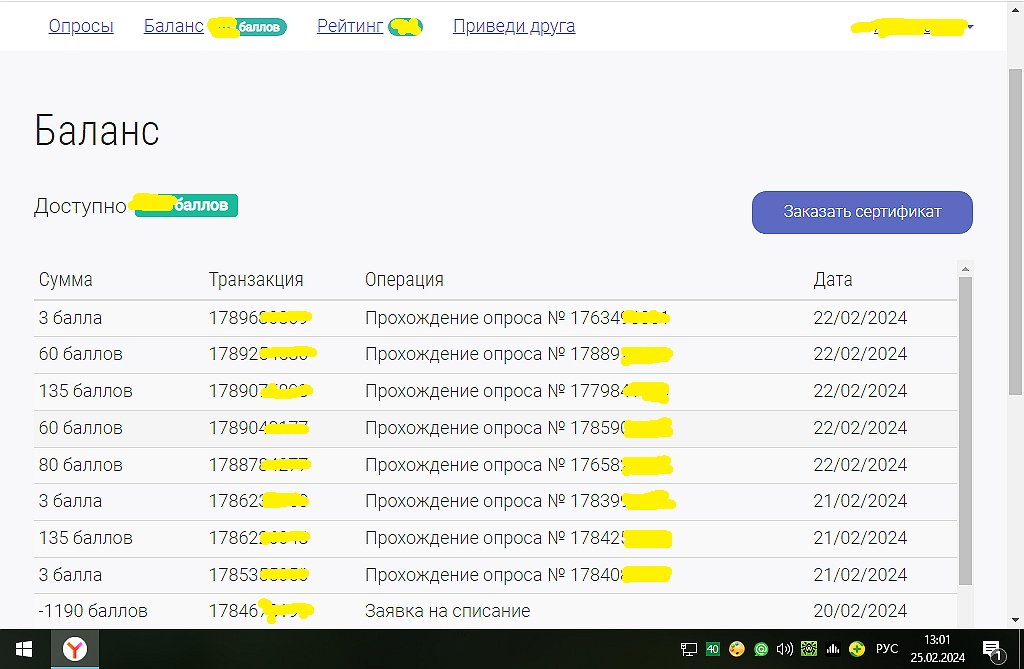 Опросник рабочий и там появилась рефералка. За каждого реферала, прошедшего удачно 1 опрос начисляется 60 баллов.