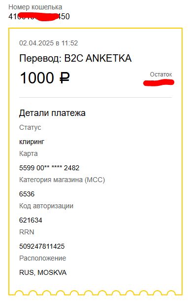 и тут Вы не правы, почти год опроснику и цитирую :"Более 1 млн. человек уже получают деньги и делают мир немного лучше, участвуя в наших опросах. За месяц выплачено 9 250 600 ₽"и не думаю, что пара десятков человек сделают "погоду" на этом опроснике, а у меня как раз столько рефералов за полгода.А в Анкетке я и 10 лет назад набивал опросы от полугода и больше на минималку.==================================================================очередная выплата на Ю-мани :