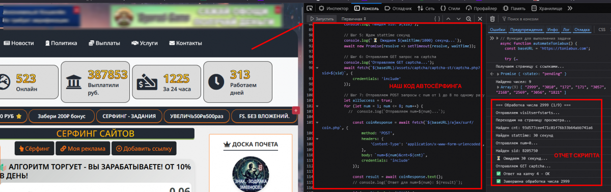 Привет всем! Делюсь самым простым способом быстрого заработка — превращаем обычный сёрфинг в автосерфинг. Что это даёт? Не нужно сидеть и смотреть рекламу, решать капчу — просто запускаешь скрипт в консоли и занимаешься своими делами.